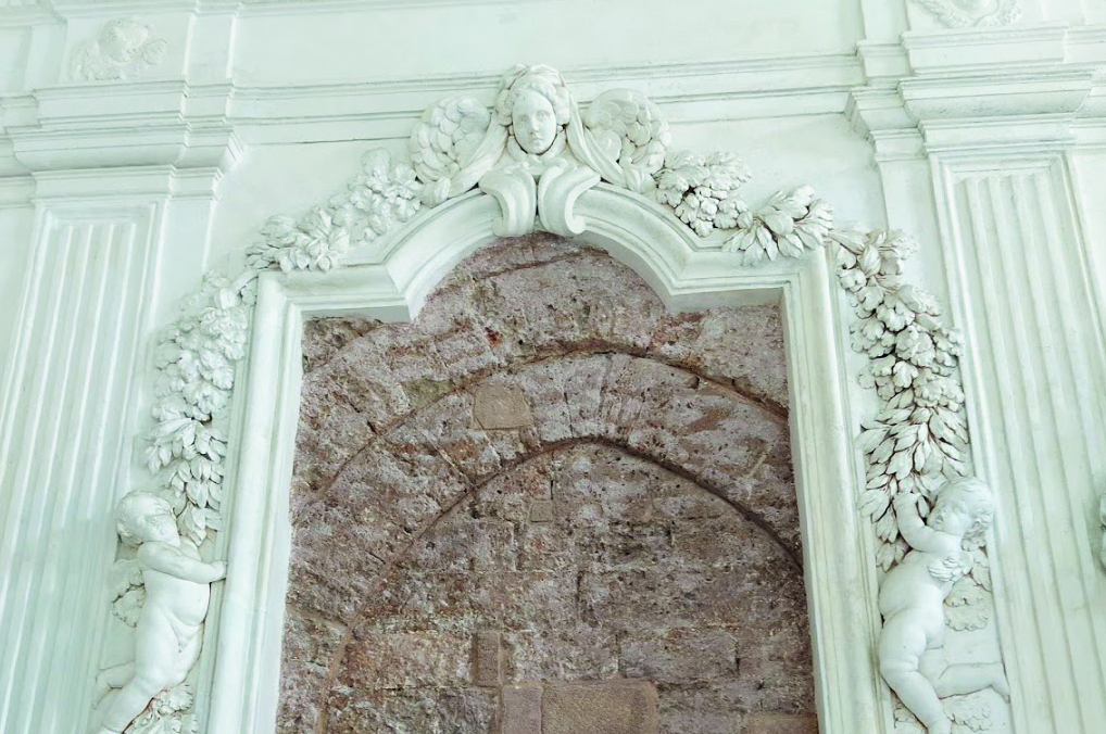 Due elementi del ricco apparato iconografico dislocati nelle imposte dell’arco trionfale del presbiterio, destano particolare attenzione: due figure maschili barbute di placido aspetto le quali accolgono tra le braccia i corpi esanimi di fanciulli agonizzanti. Le mani dei putti strette al petto e le loro bocche semichiuse sono volte ad enfatizzare il sopraggiungere della morte.