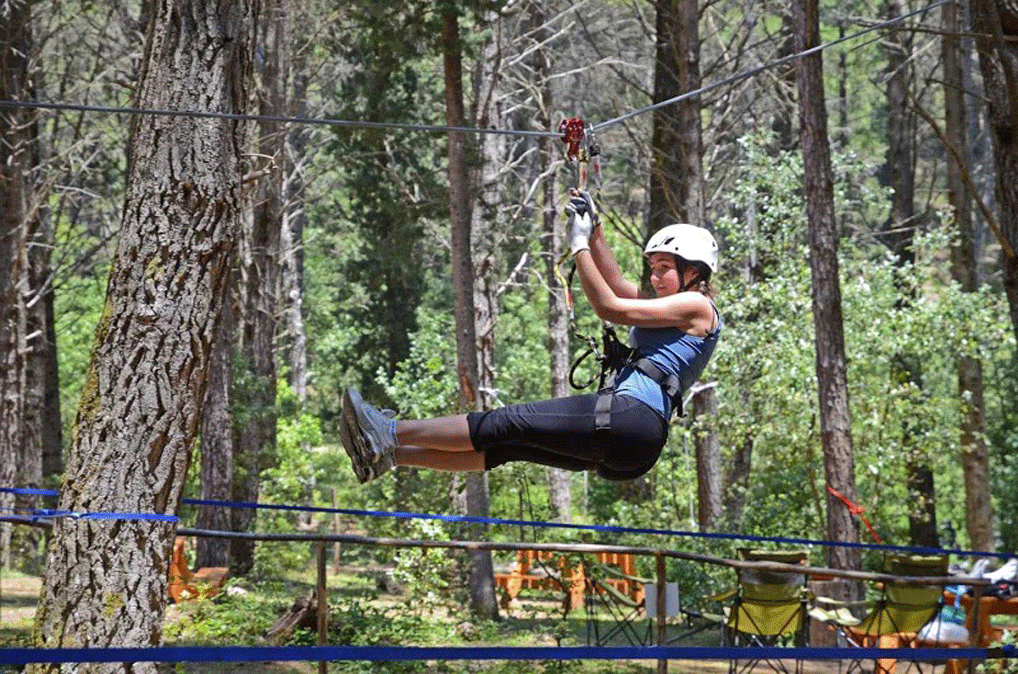 Per cominciare, si indosserà un’imbragatura completa di caschetto e, seguiti da un istruttore, comincerete con i percorsi del campo pratica a terra, dove si apprendono le tecniche di sicurezza. Da questo momento si comincia a prendere dimestichezza con l’altezza arrampicandosi lungo i percorsi Verde, Giallo e Arancio, e qui sperimenterete la prima emozionante teleferica! E poi ancora più in alto con i percorsi Azzurro e Blu con altre due emozionanti teleferiche.