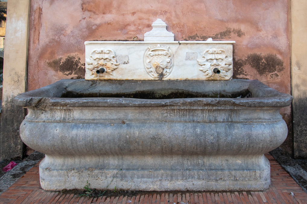 L’opera, dallo stile minimalista, presenta una piccola vasca in pietra di forma circolare sorretta da una colonna. Il bacino lapideo è sormontato da una pittoresca maschera in terracotta dalla cui bocca un tempo fuorisciva l’acqua per riversarsi nella vasca sottostante.