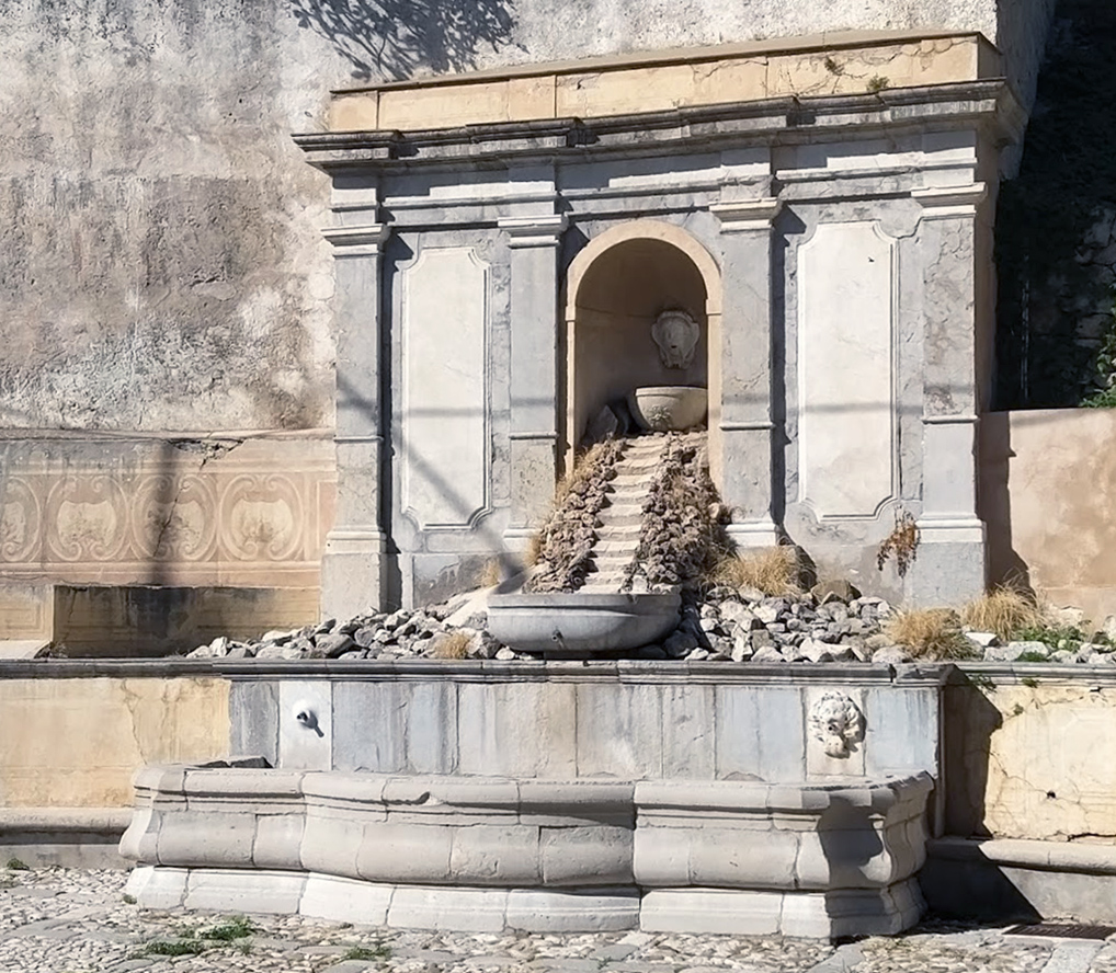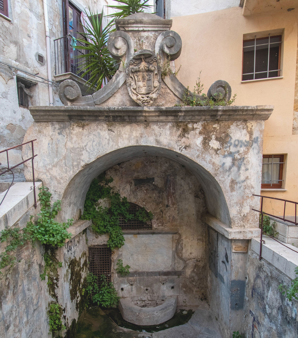 L’omonima fontana, risalente al 1660, coincide quasi con la cinta di mura fatta costruire dal Venero a netta delimitazione del centro abitato. La fontana presenta un’unica e modesta vasca di forma semicircolare addossata alla parete. La vasca è sormontata da due lapidi marmoree al di sopra delle quali trovano collocazione tre stemmi finemente effigiati.