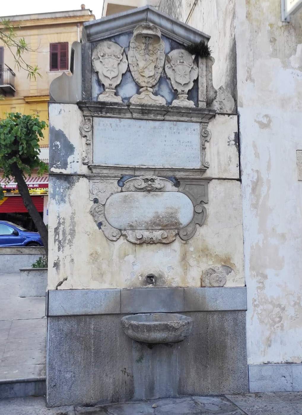Realizzata ben un secolo prima rispetto alle altre (1665) per volere dell’arcivescovo Ludovico Los Cameros, la fontana dell’Arpia (o fontana ad Edicola) trova ubicazione nello slargo fra via Benedetto D’Acquisto e la via Palermo.