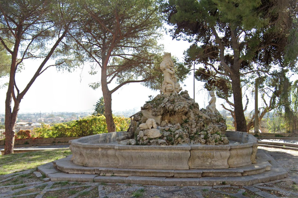 L’omonima fontana è ubicata al centro della villa a pochi passi dalle imponenti fronde dei secolari ficus magnolioide.