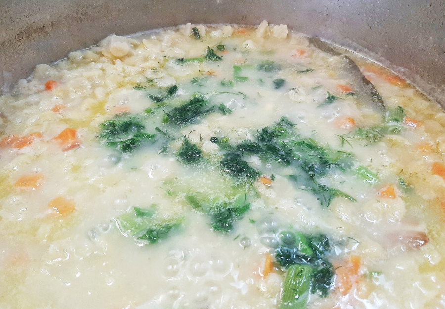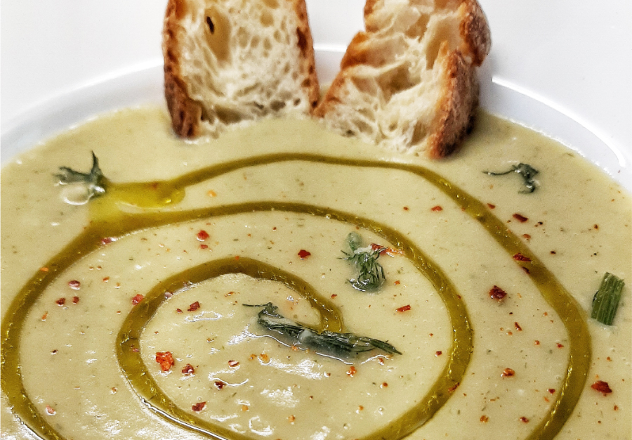 A fine cottura, per un risultato più omogeneo, frulla con un mixer ad immersione ricordandoti prima di rimuovere l’aglio e la foglia di alloro.