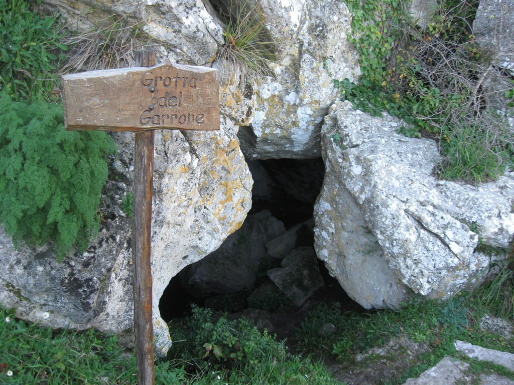 La Grotta del Garrone (in arabo “Gar” significa Grotta) è una interessante cavità di prevalente origine tettonica (originatasi per movimento relativo tra i blocchi di roccia coinvolti nella deformazione che ha dato vita al rilievo della Pizzuta) che si apre sul lato sud dell’omonima Portella. La grotta è facilmente accessibile attraverso una finestra della volta ed uno scivolo di materiale franato attraverso il quale si accede ad una sala orizzontale dove potere ammirare due piccoli laghetti alimentati dalle acque di stillicidio. All’interno della grotta, grazie al suo particolare microclima, è possibile osservare due felci molto rare per la Sicilia: la scolopendria emionitide e la lingua cervina.